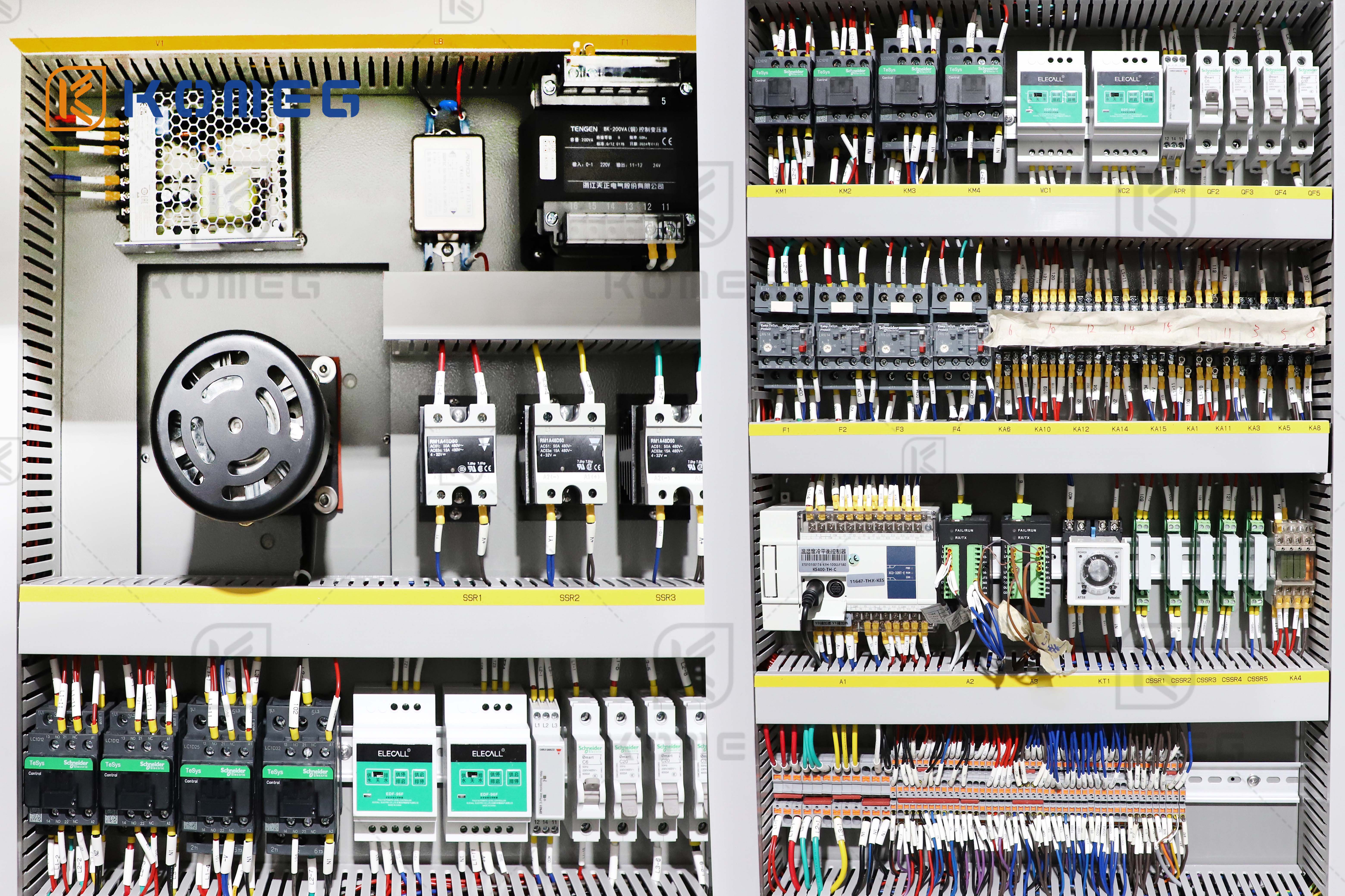 在电源输入端,塑壳断路器承担首道屏障职责,依据IEC 60947-2标准,在发生严重过载或短路时快速切断总电源。科明的电气柜设计严格遵循GB/T 5226.1机械电气安全标准,并已通过CE安全认证,确保基础架构的绝对可靠。